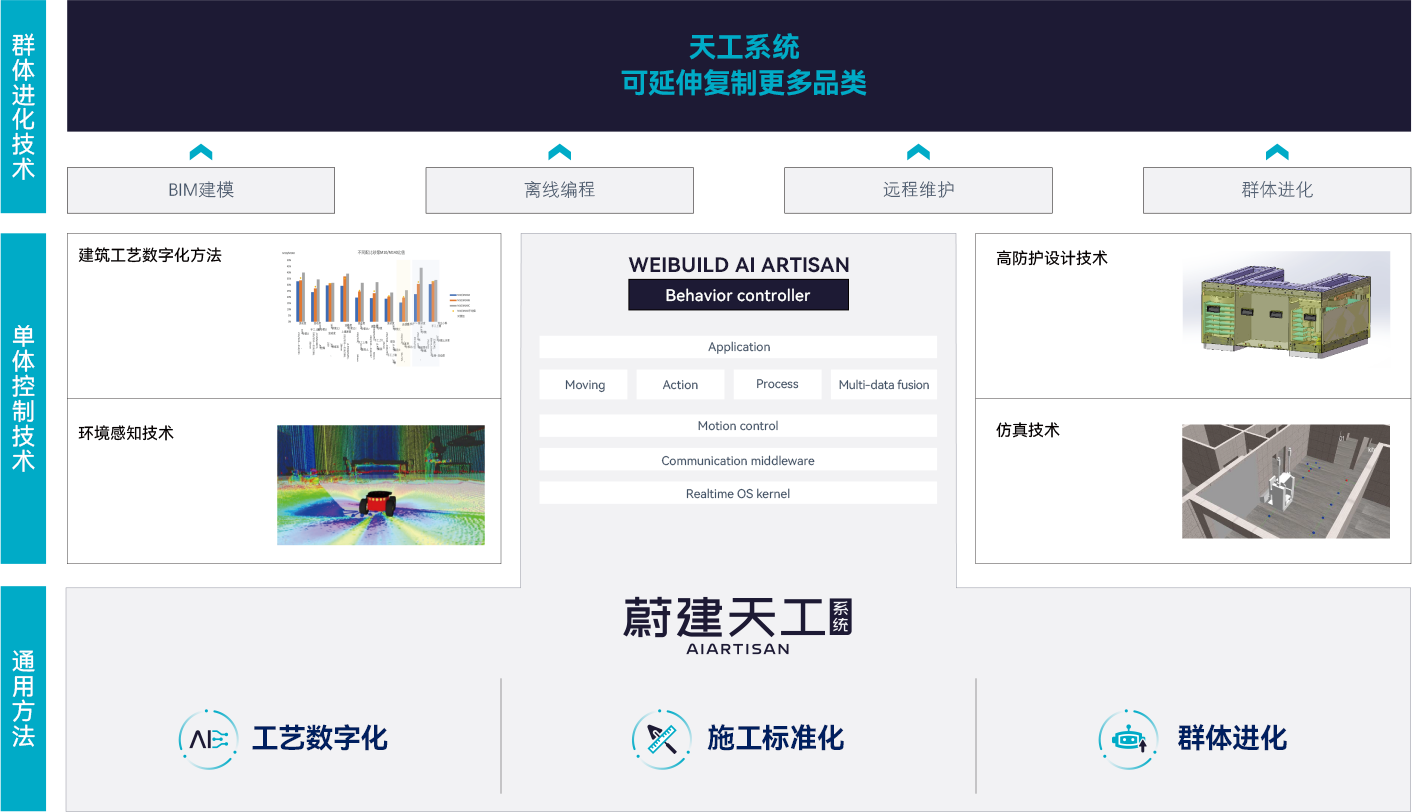 天工系統搭配高精度的機械作業設備,做到超越人工的作業能力,實現泵、抹、壓、收四個工序一步完成